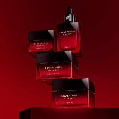 Today, the Sculptural anti-aging range is designed to restore the appearance of the face’s youthful dimension. Distinctive and elegant, the Sculptural red packaging echoes the heritage of the Maison.